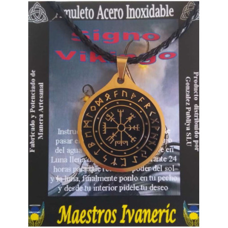 Talismán Artesano De Acero Inoxidable Signos Vikingos, 4cm de Diámetro, con Cordón