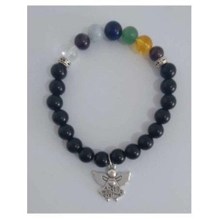 Pulsera Artesana de Propósito Obsidiana Negra con 7 Minerales y Ángel. Protección contra la Negatividad